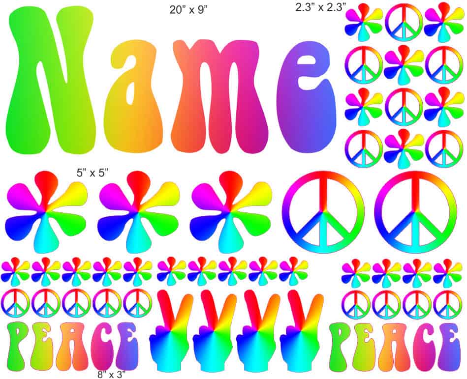 Hippie Girl personalized camp trunk decals