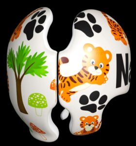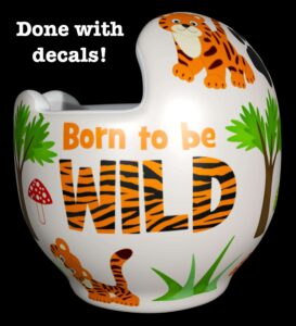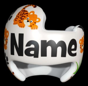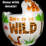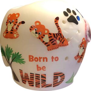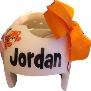 How to apply the Baby Tigers cranial band decals – watch me decorate an entire helmet. Do you have one of the new Star Band 3D’s covered in small holes? What can you do? I recommend you pick a design with medium to larger decals and just ‘paper over’ the holes that get covered.. Then mod podge as you would any other band. Yes, up close you ‘see’ it, but most of the time you (and other folks) are several feet away and your eyes fill in the missing part.