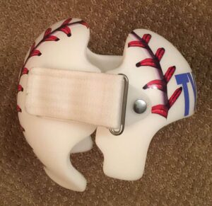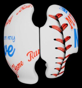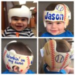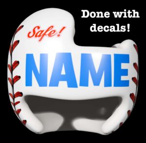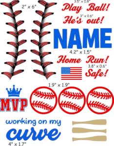 Baseball Stitching 3D themed cranial band decoration decals! It captures the theme with images and quotes. This is an approximately 8.5″ x 11″ sheet of high quality vinyl die cut decals. Show your passion for Baseball with these stitching’s, quotes, and characters playing baseball and the collection of quotes and decorate your doc band or full helmet. The sheet will be more than enough to completely decorate any brand of plagiocephaly helmet, and the decals will stick to all brands of plagiocephaly helmet but we do recommend a light sanding with 400 grit sandpaper because some bands have a slick coating that won’t wash off.