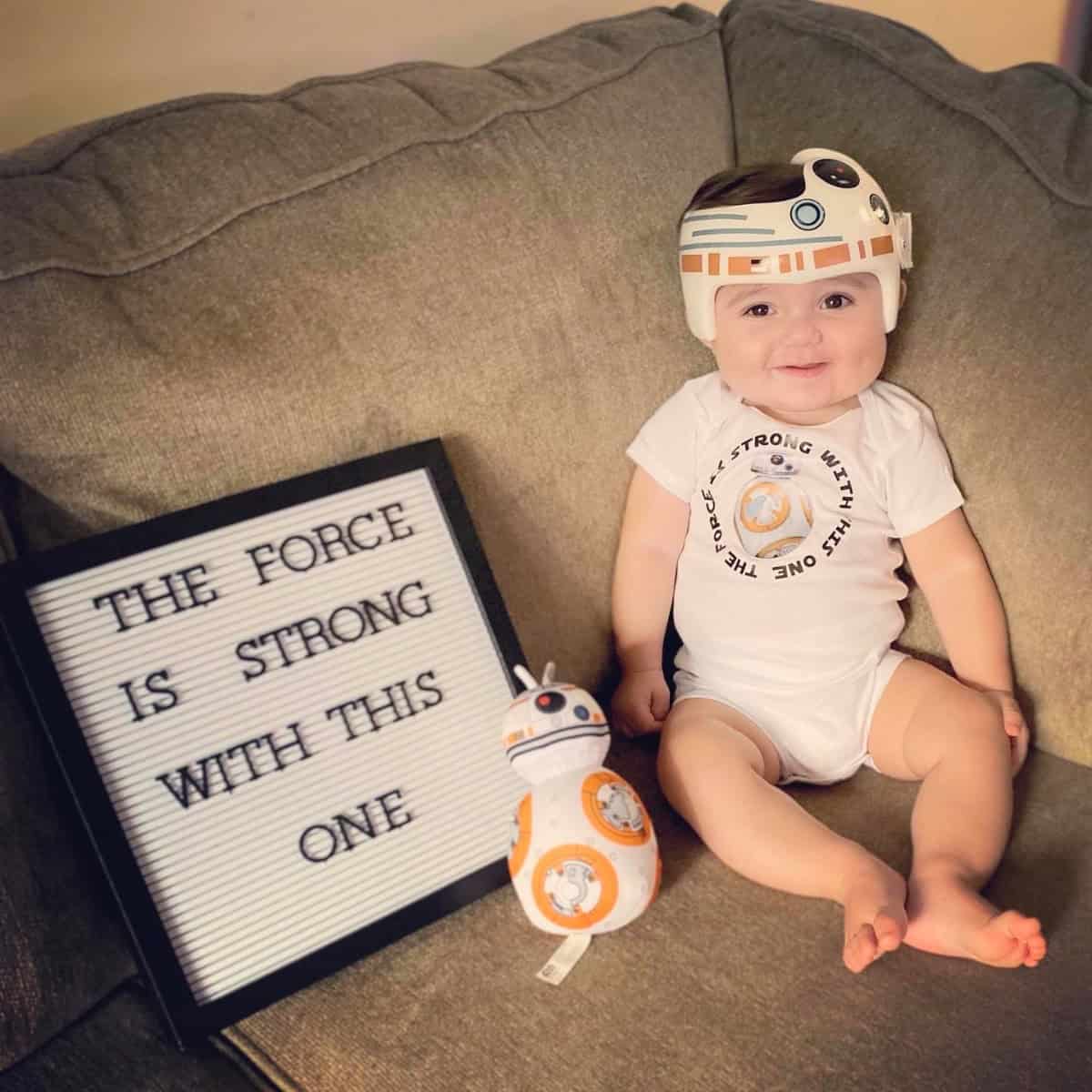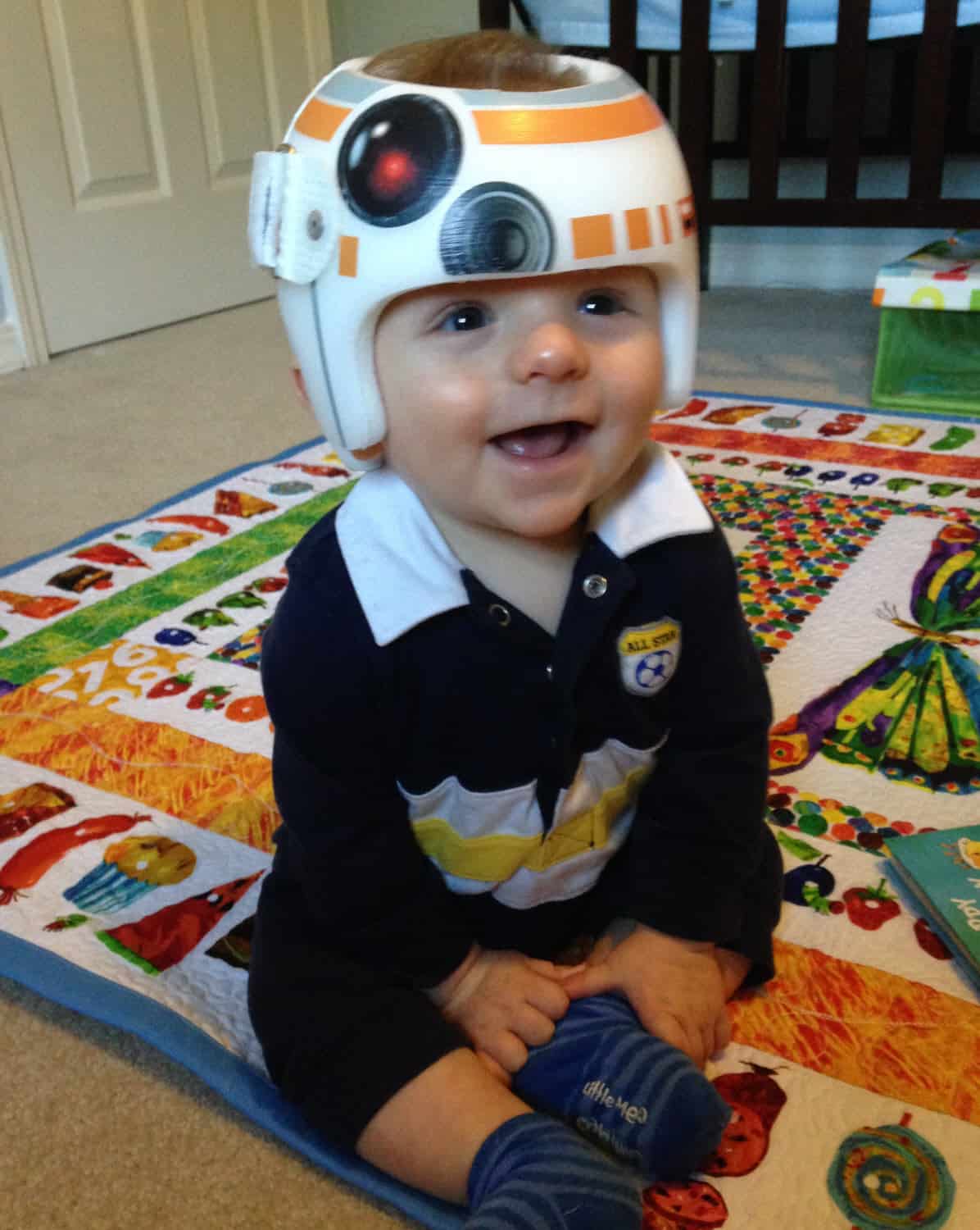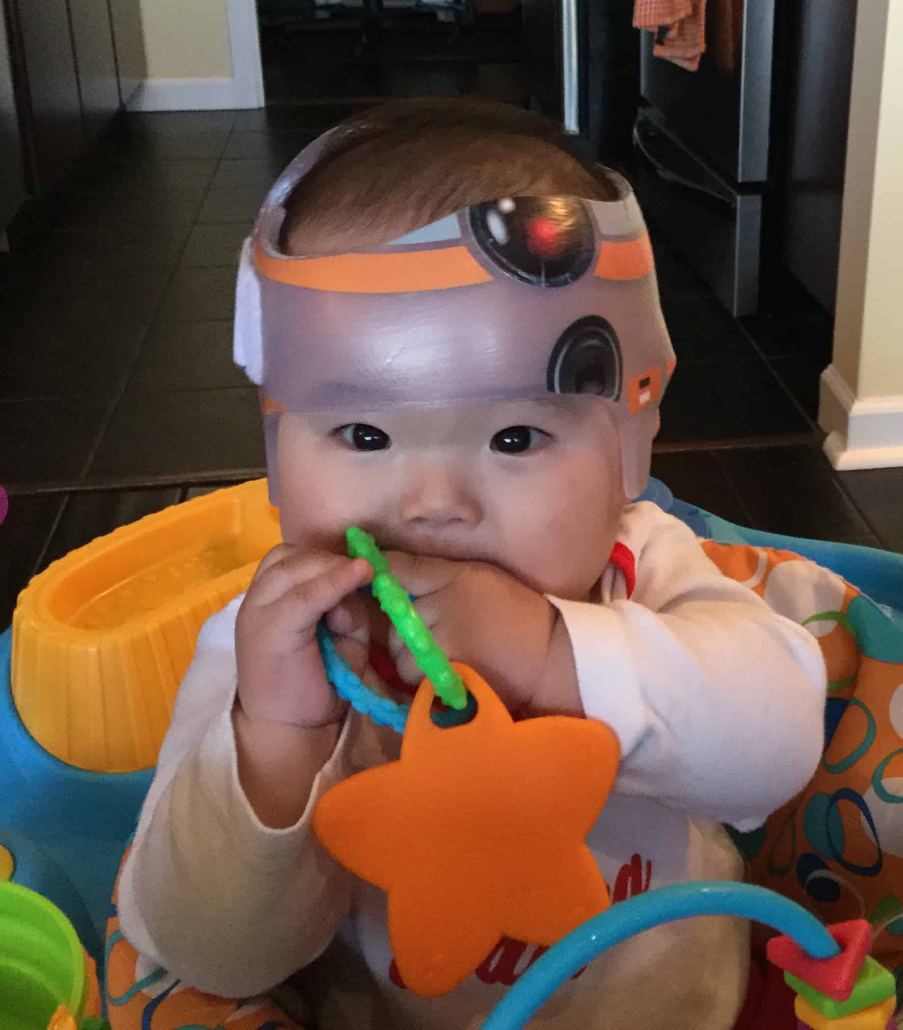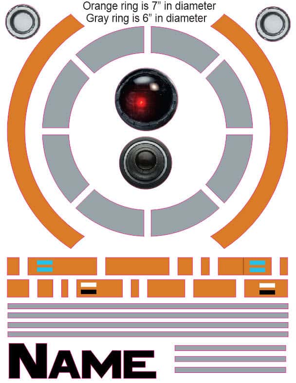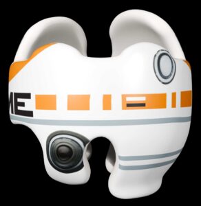 BB8 cranial band decoration decals! The design is intended to turn your helmet into BB8’s dome! You get an 8.5″ x 11″ sheet of high quality vinyl die cut decals. This collection will be more than enough to completely decorate any brand of plagiocephaly helmet, and the decals will stick to all brands of plagiocephaly helmet but we do recommend a light sanding with 400 grit sandpaper because some bands have a slick coating that won’t wash off.