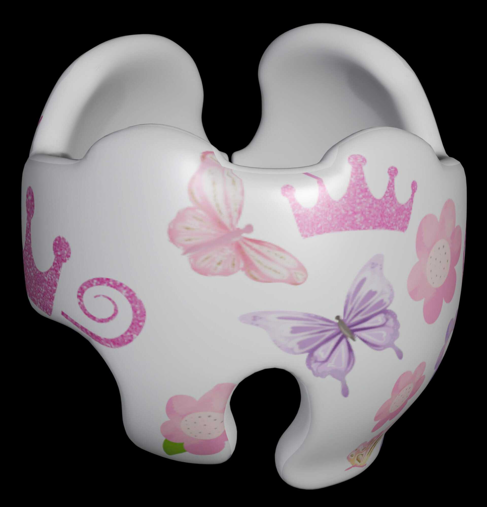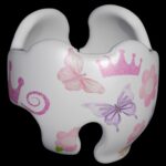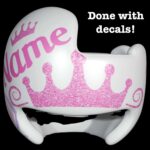 How to apply the Butterfly Princess glitter crowns and glitter butterflies cranial band stickers – watch me decorate an entire helmet. Do you have one of the new Star Band 3D’s covered in small holes? What can you do? I recommend you pick a design with medium to larger decals and just ‘paper over’ the holes that get covered.. Then mod podge as you would any other band. Yes, up close you ‘see’ it, but most of the time you (and other folks) are several feet away and your eyes fill in the missing part.