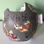 This Calvin & Hobbes design looks great on a white or black helmet (we will adjust colors as needed), and we now offer complete helmet painting kits. Please also see our helmet painting instruction page.