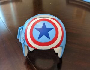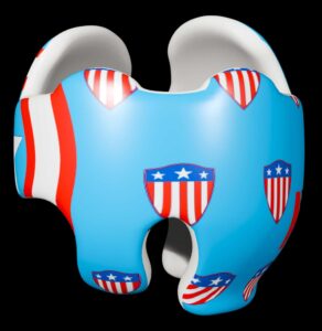 How to apply the Captain America Large Shield cranial band stickers – watch me decorate an entire helmet. Do you have one of the new Star Band 3D’s covered in small holes? What can you do? I recommend you pick a design with medium to larger decals and just ‘paper over’ the holes that get covered.. Then mod podge as you would any other band. Yes, up close you ‘see’ it, but most of the time you (and other folks) are several feet away and your eyes fill in the missing part.