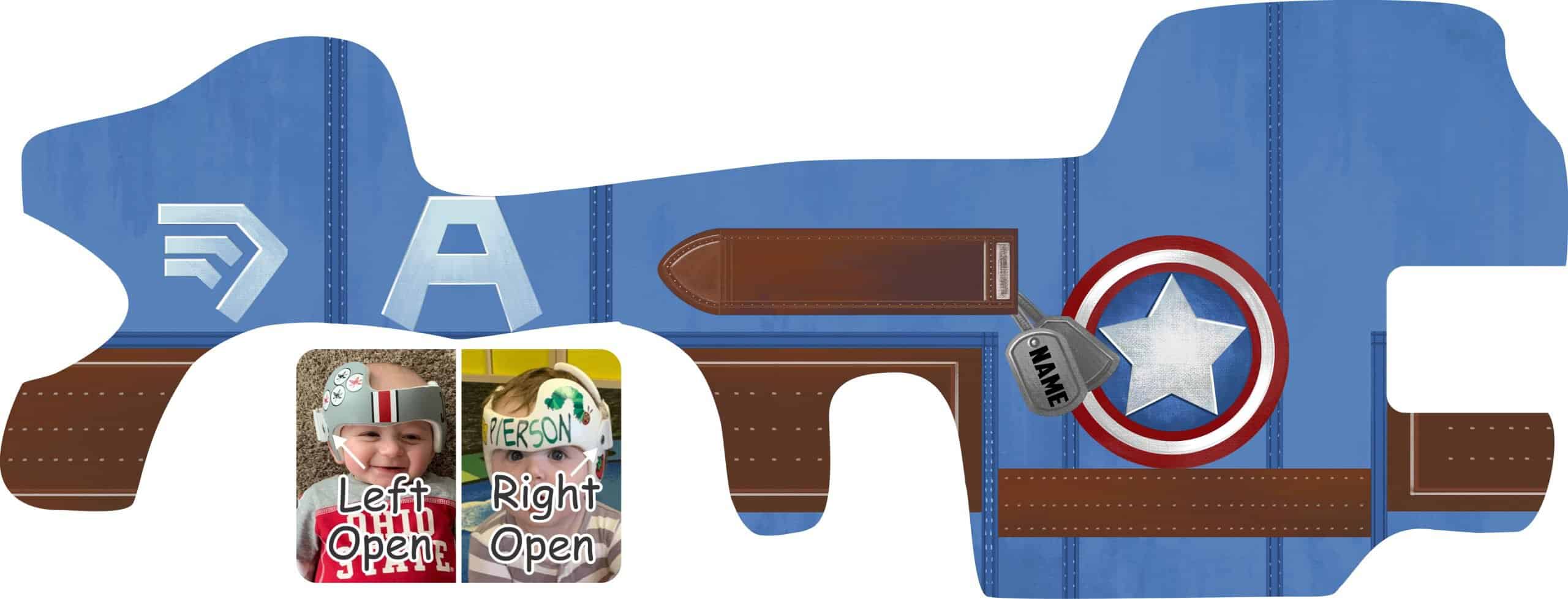 Captain America Hand Painted style doc band wrap! WE RECOMMEND YOU ONLY ORDER THIS DESIGN IF YOU HAVE A DOC BAND. Full helmet styles are more difficult to wrap and you might not get good results.