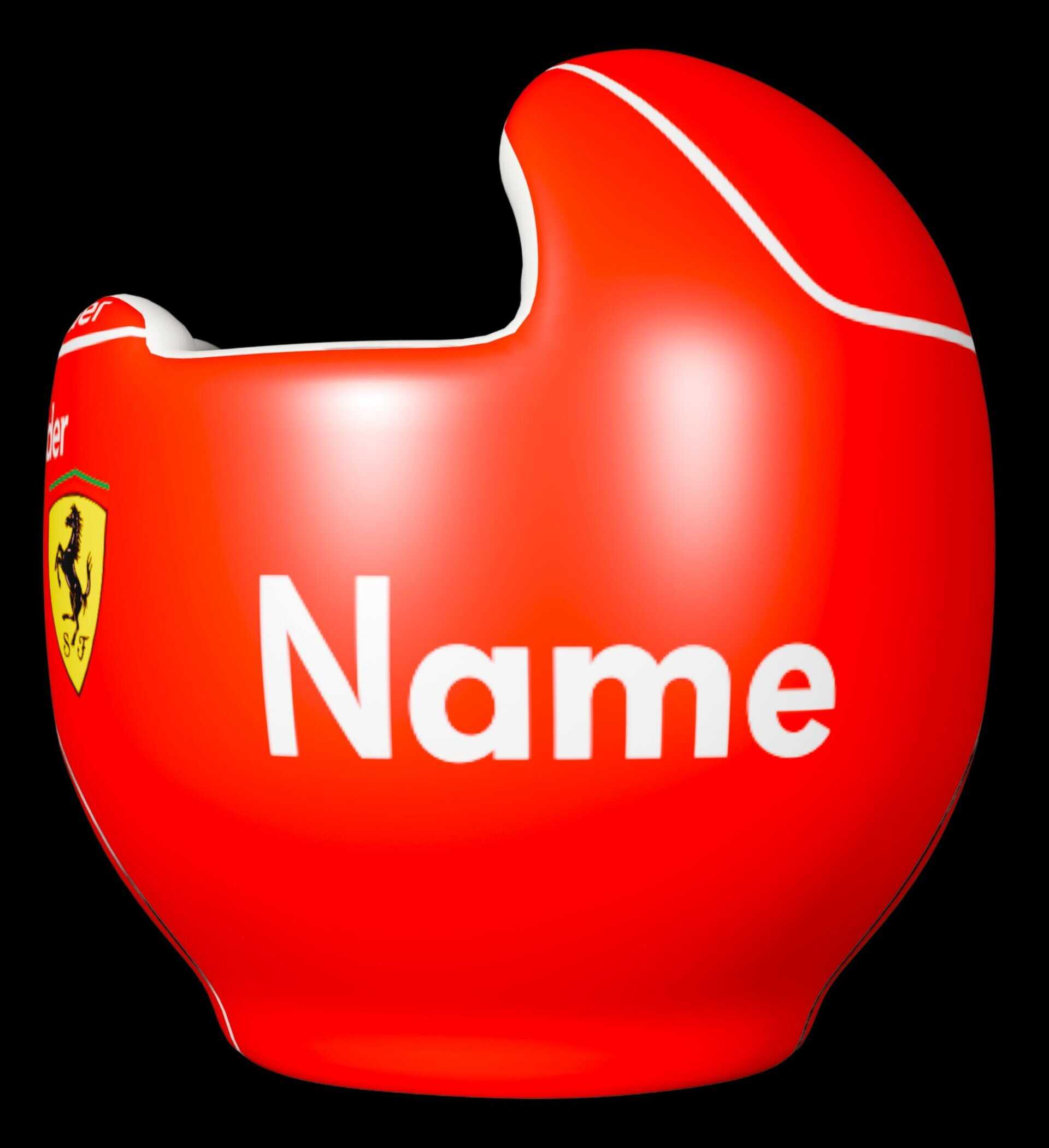 Charles Lecleric Ferrari Doc Band Wrap! It is part of our “hand painted” series of wraps.  WE RECOMMEND YOU ONLY ORDER THIS DESIGN IF YOU HAVE A DOC BAND. Full helmet styles are more difficult to wrap and you might not get good results.