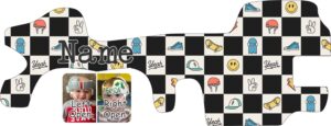 This Checkerboard Doc Band Wrap design with an optional colorful name is physical vinyl – this is not a “we email you an image and good luck turning it into something real”, and we have a video showing exactly how to install the wrap. It will measure 9.5 inches by 26 inches. Please see note #5 below – we recommend professional installation of the wrap.