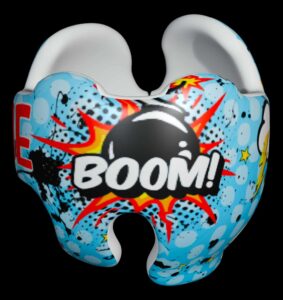 Comic Book retro super hero Doc Band Wrap! WE RECOMMEND YOU ONLY ORDER THIS DESIGN IF YOU HAVE A DOC BAND. Full helmet styles are very difficult to wrap and you might not get good results.