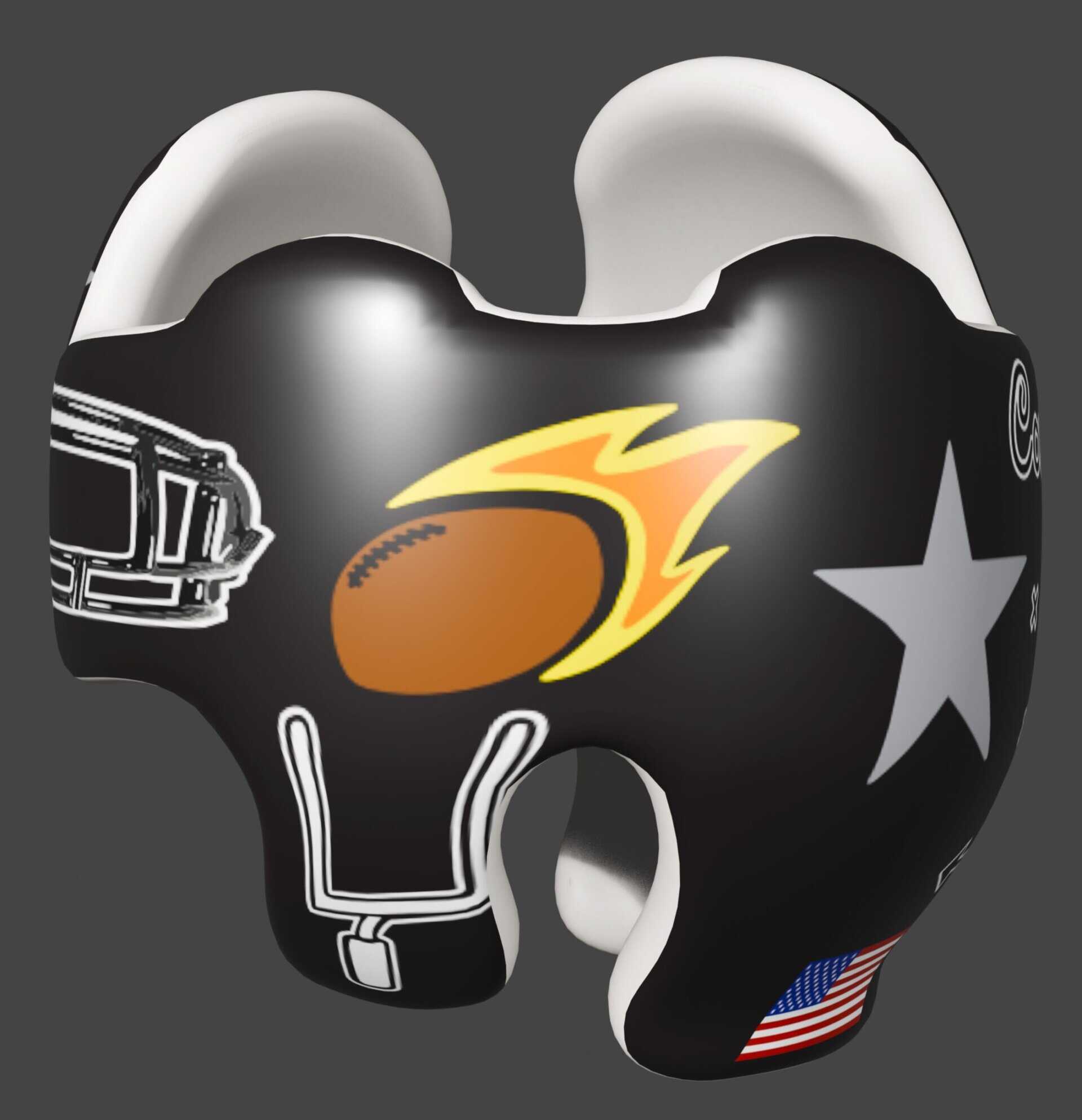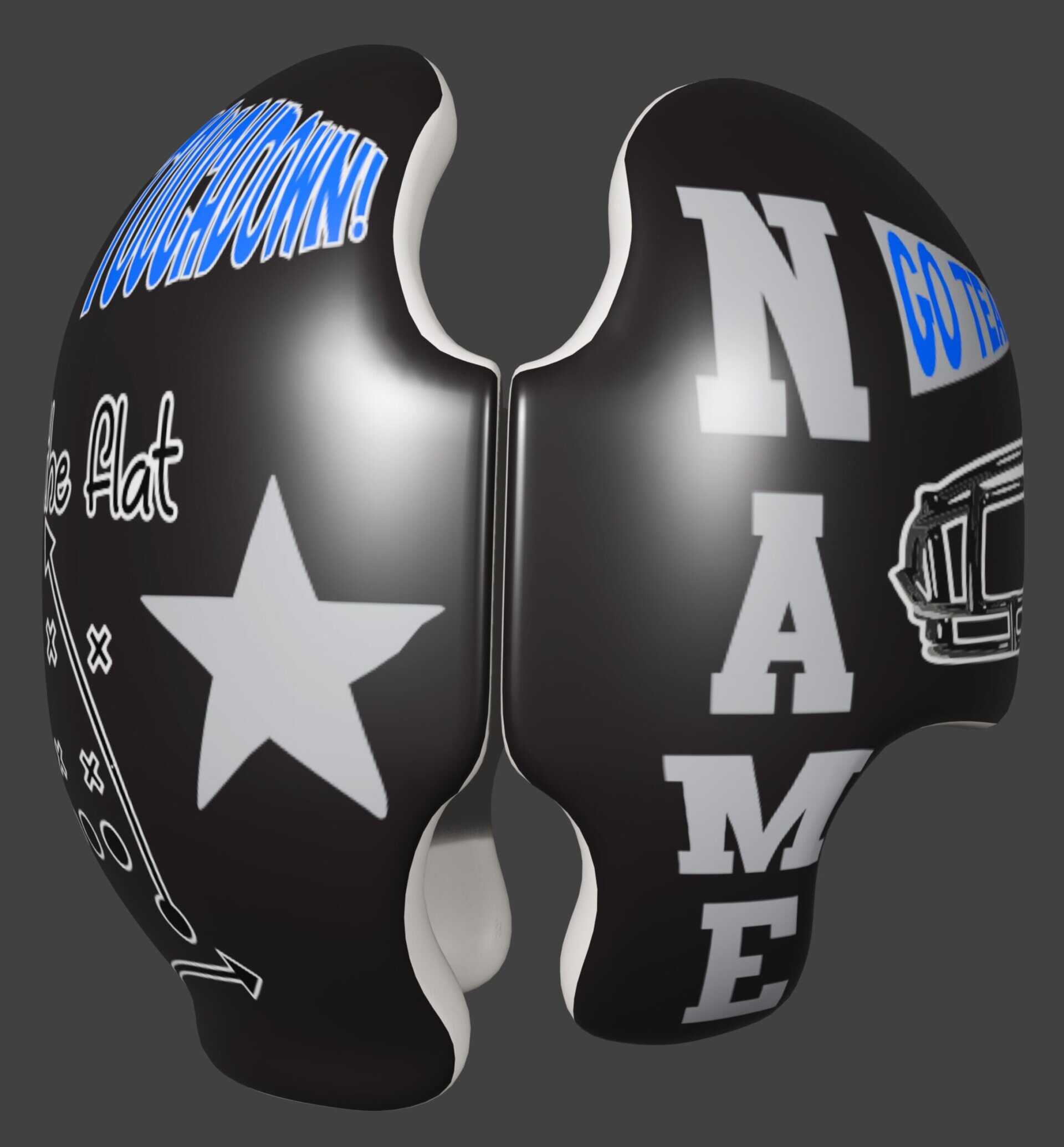 We have many football designs, and we are happy to mix and match from ANY other design, OR change sizing OR colors. Just note it in special instructions.  We can print any colors of the rainbow and we want you to have a helmet or doc band that you are proud to show off. We also create new artwork every day.