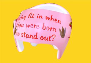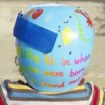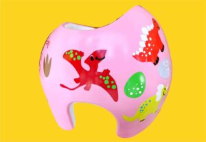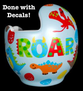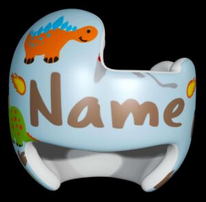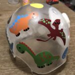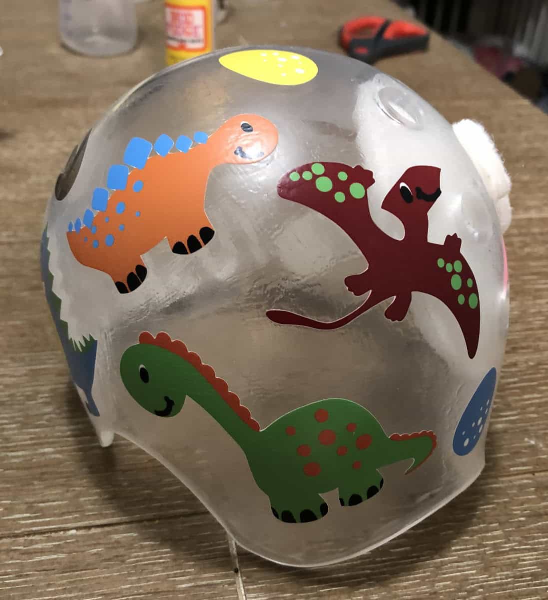 How to apply the dinosaur cranial band decals – watch me decorate an entire helmet. Do you have one of the new Star Band 3D’s covered in small holes? What can you do? I recommend you pick a design with medium to larger decals and just ‘paper over’ the holes that get covered.. Then mod podge as you would any other band. Yes, up close you ‘see’ it, but most of the time you (and other folks) are several feet away and your eyes fill in the missing part.