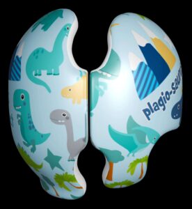 Some folks ask about wrapping full helmets but we can’t in good conscience recommend a wrap for full helmets. They have more curvature around the top compared to a doc band. We can guarantee an experienced installer can install the wrap on a doc band and have it lay flat but we can’t make that guarantee for full helmets. We have a dinosaur 6 cranial band design for those helmets.