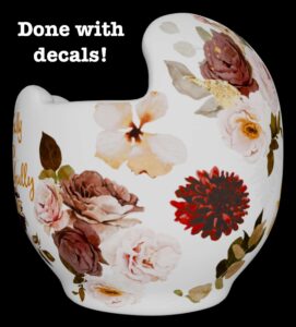 How to apply the Fall Colors Watercolor Flowers cranial band decals – watch me decorate an entire helmet. Do you have one of the new Star Band 3D’s covered in small holes? What can you do? I recommend you pick a design with medium to larger decals and just ‘paper over’ the holes that get covered.. Then mod podge as you would any other band. Yes, up close you ‘see’ it, but most of the time you (and other folks) are several feet away and your eyes fill in the missing part.