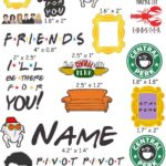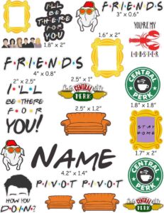 Friends TV Show themed cranial band decoration! This pop culture design is an approximately 8.5″ x 11″ sheet of high quality vinyl die cut decals. We cut around the shapes, so no clunky white space. We also use a full color vinyl printer, so all designs are printed correctly and no assembly work for you.