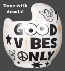 This Good Vibes Only design looks great on a white helmet, and we now offer complete helmet painting kits. Please also see our helmet painting instruction page.