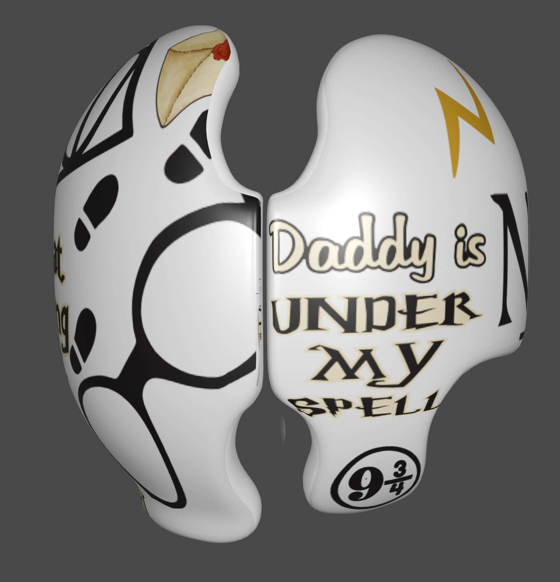We have many Harry Potter designs, and we are happy to mix and match from ANY other design, OR change sizing OR colors. Just note it in special instructions.  We can print any colors of the rainbow and we want you to have a helmet or doc band that you are proud to show off. We also create new artwork every day.
