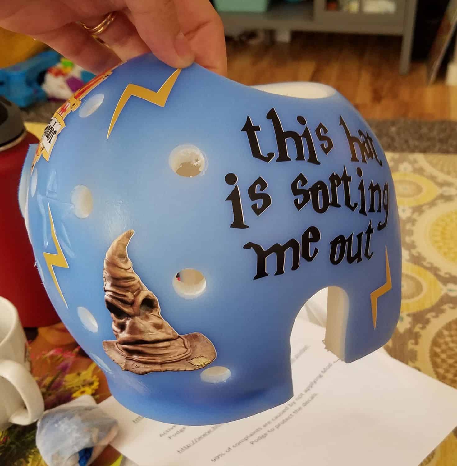 How to apply the Harry Potter cranial band decals – watch me decorate an entire helmet.