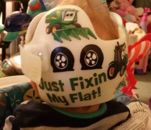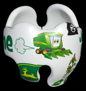 John Deere cranial band decoration decals! It captures the theme with images and quotes. This is an approximately 8.5″ x 11″ sheet of high quality vinyl die cut decals. Show your passion for these classic friends with the characters playing and acting out many of their favorite scenes and decorate your doc band or full helmet. The sheet will be more than enough to completely decorate any brand of plagiocephaly helmet, and the decals will stick to all brands of plagiocephaly helmet but we do recommend a light sanding with 400 grit sandpaper because some bands have a slick coating that won’t wash off.
