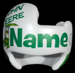 This John Deere design looks great on a yellow or green helmet (we will adjust colors), and we now offer complete helmet painting kits. Please also see our helmet painting instruction page.