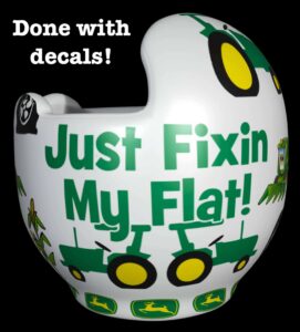 How to apply the John Deere cranial band stickers – watch me decorate an entire helmet. Do you have one of the new Star Band 3D’s covered in small holes?  What can you do?  I recommend you pick a design with medium to larger decals and just ‘paper over’ the holes that get covered..  Then mod podge as you would any other band.  Yes, up close you ‘see’ it, but most of the time you (and other folks) are several feet away and your eyes fill in the missing part.