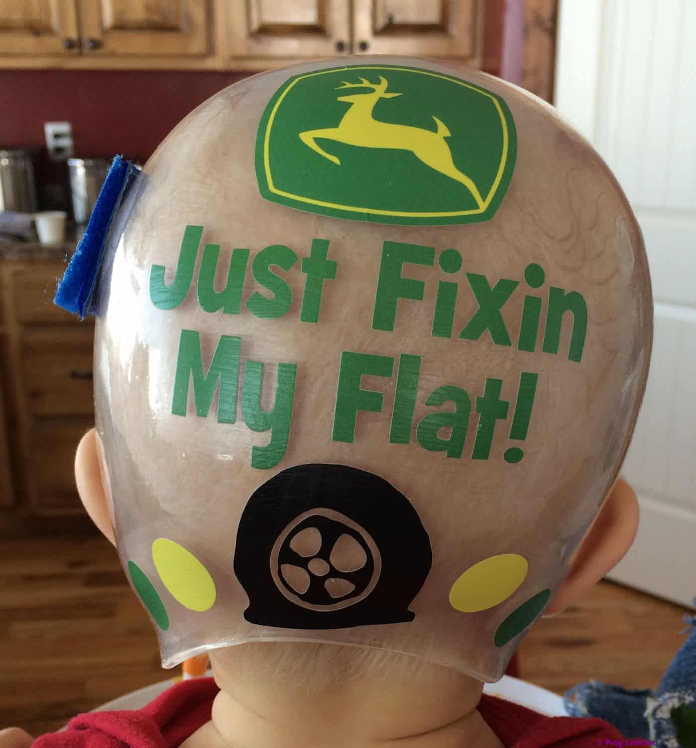 How to apply the John Deere cranial band stickers – watch me decorate an entire helmet. Do you have one of the new Star Band 3D’s covered in small holes?  What can you do?  I recommend you pick a design with medium to larger decals and just ‘paper over’ the holes that get covered..  Then mod podge as you would any other band.  Yes, up close you ‘see’ it, but most of the time you (and other folks) are several feet away and your eyes fill in the missing part.