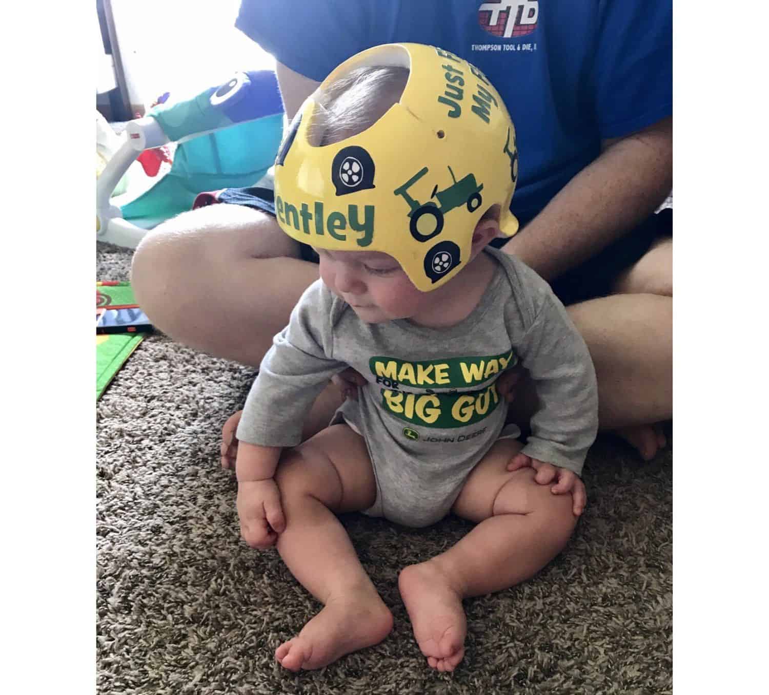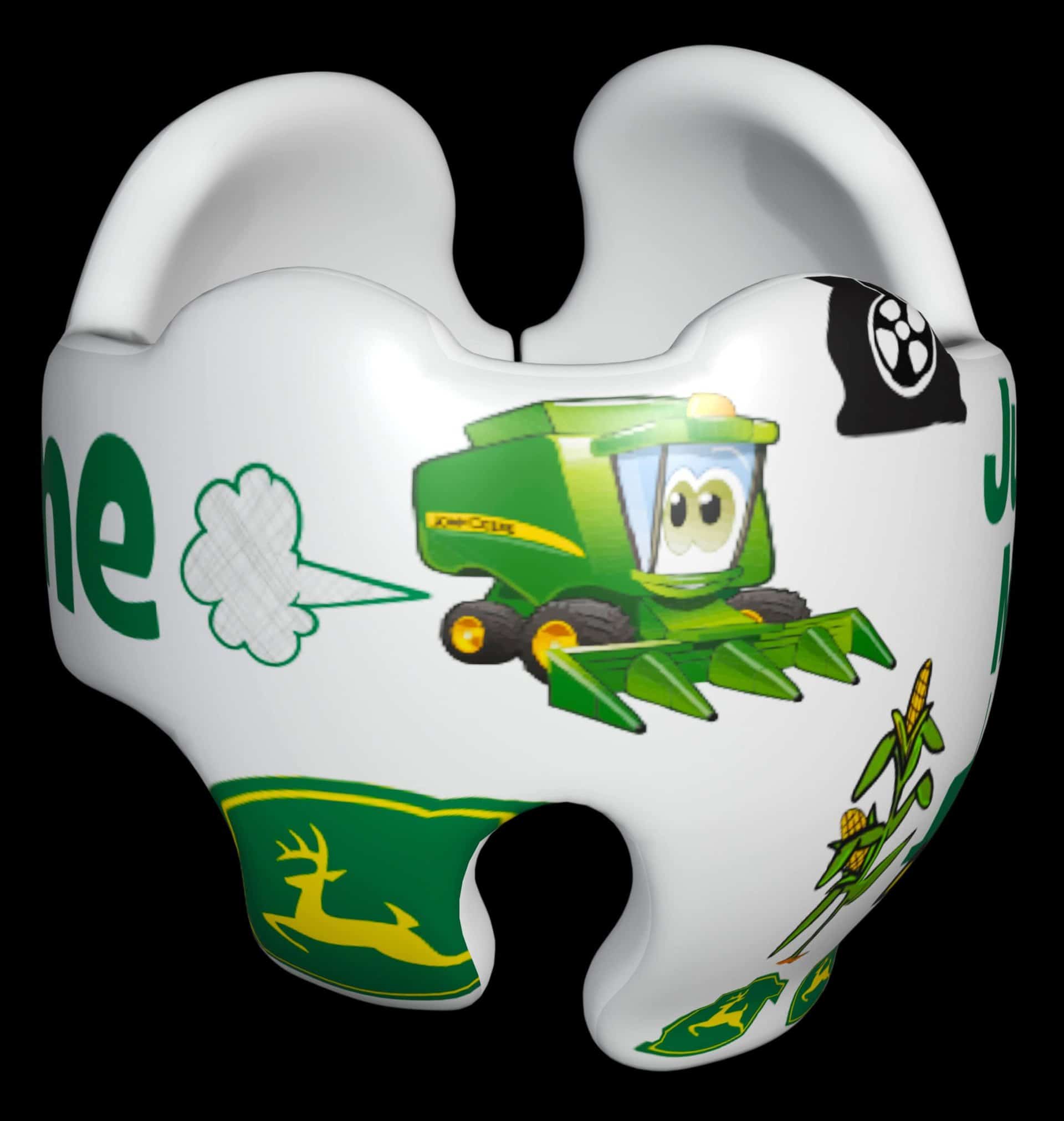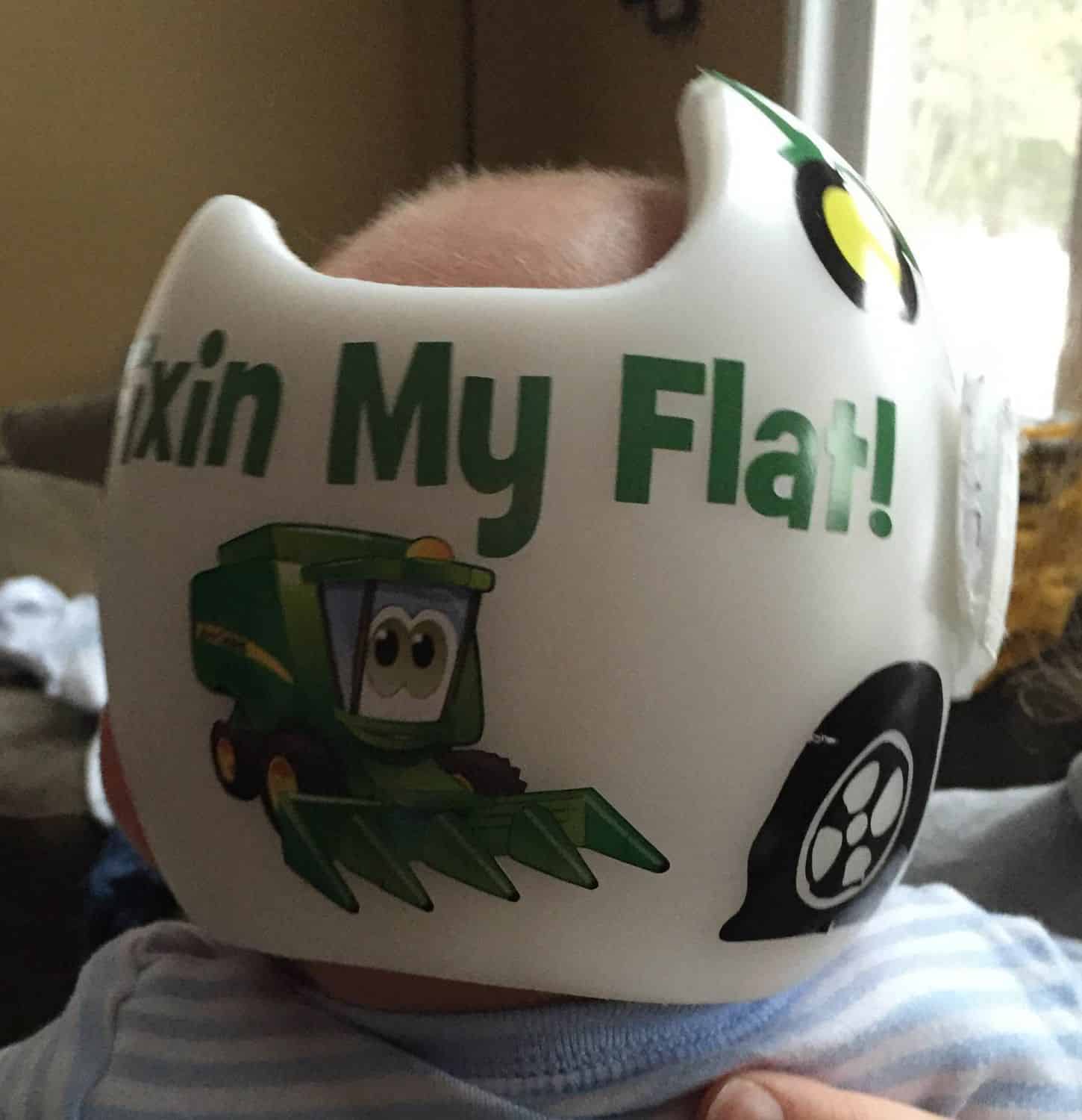 John Deere cranial band decoration decals! It captures the theme with images and quotes. This is an approximately 8.5″ x 11″ sheet of high quality vinyl die cut decals. Show your passion for these classic friends with the characters playing and acting out many of their favorite scenes and decorate your doc band or full helmet. The sheet will be more than enough to completely decorate any brand of plagiocephaly helmet, and the decals will stick to all brands of plagiocephaly helmet but we do recommend a light sanding with 400 grit sandpaper because some bands have a slick coating that won’t wash off.