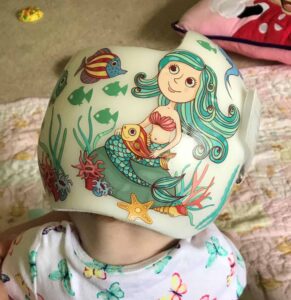 How to apply the Mermaid cranial band decoration – watch me decorate an entire helmet.