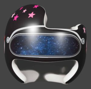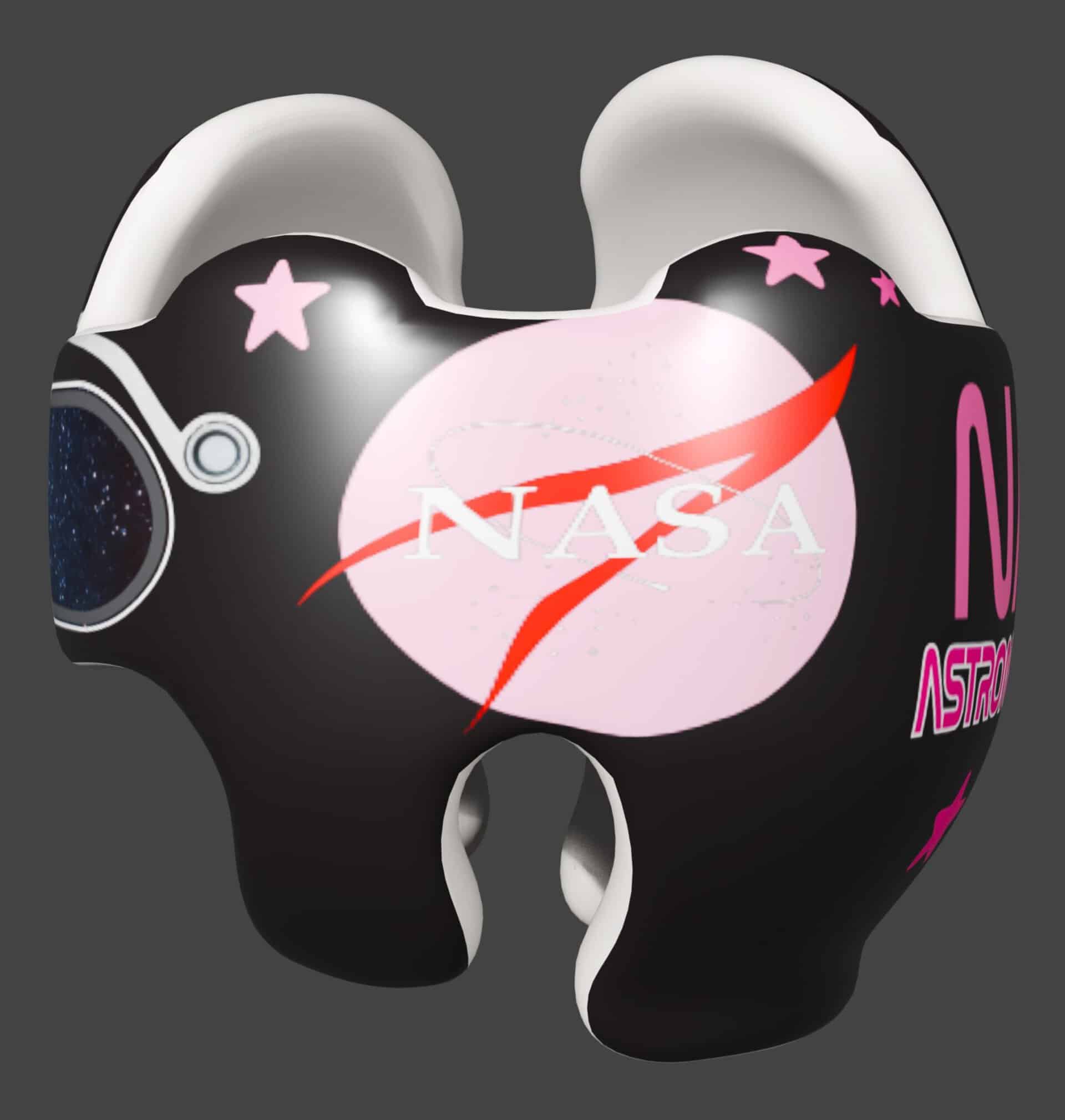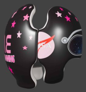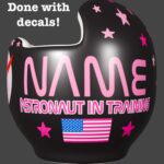 How to apply the NASA visor girl cranial band decals – watch me decorate an entire helmet. Do you have a Star Band covered in holes? I use a mix and match of two strategies. One is pick a design with smaller elements that fit around the holes, and the second is just not worry about them. Some folks ‘paper over’ the holes, but I just cut a hole in the decal that is covering the hole. Yes, up close you ‘see’ it, but most of the time you (and other folks) are several feet away and your eyes fill in the missing part.