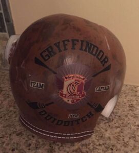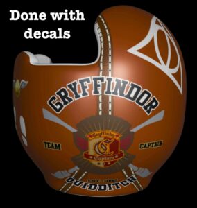 How to apply the Quidditch Team Captain Harry Potter – watch me decorate an entire helmet. Do you have one of the new Star Band 3D’s covered in small holes? What can you do? I recommend you pick a design with medium to larger decals and just ‘paper over’ the holes that get covered.. Then mod podge as you would any other band. Yes, up close you ‘see’ it, but most of the time you (and other folks) are several feet away and your eyes fill in the missing part.