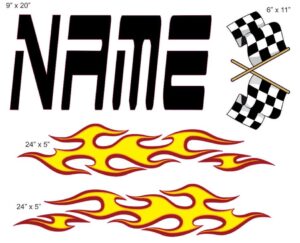 Personalize your summer camp trunk with these Racing?vinyl decals. The design you see is on a 28″ x 23″ wide canvas, so you get a ton of decals and value for your money! Why buy our personalized camp trunk decals?