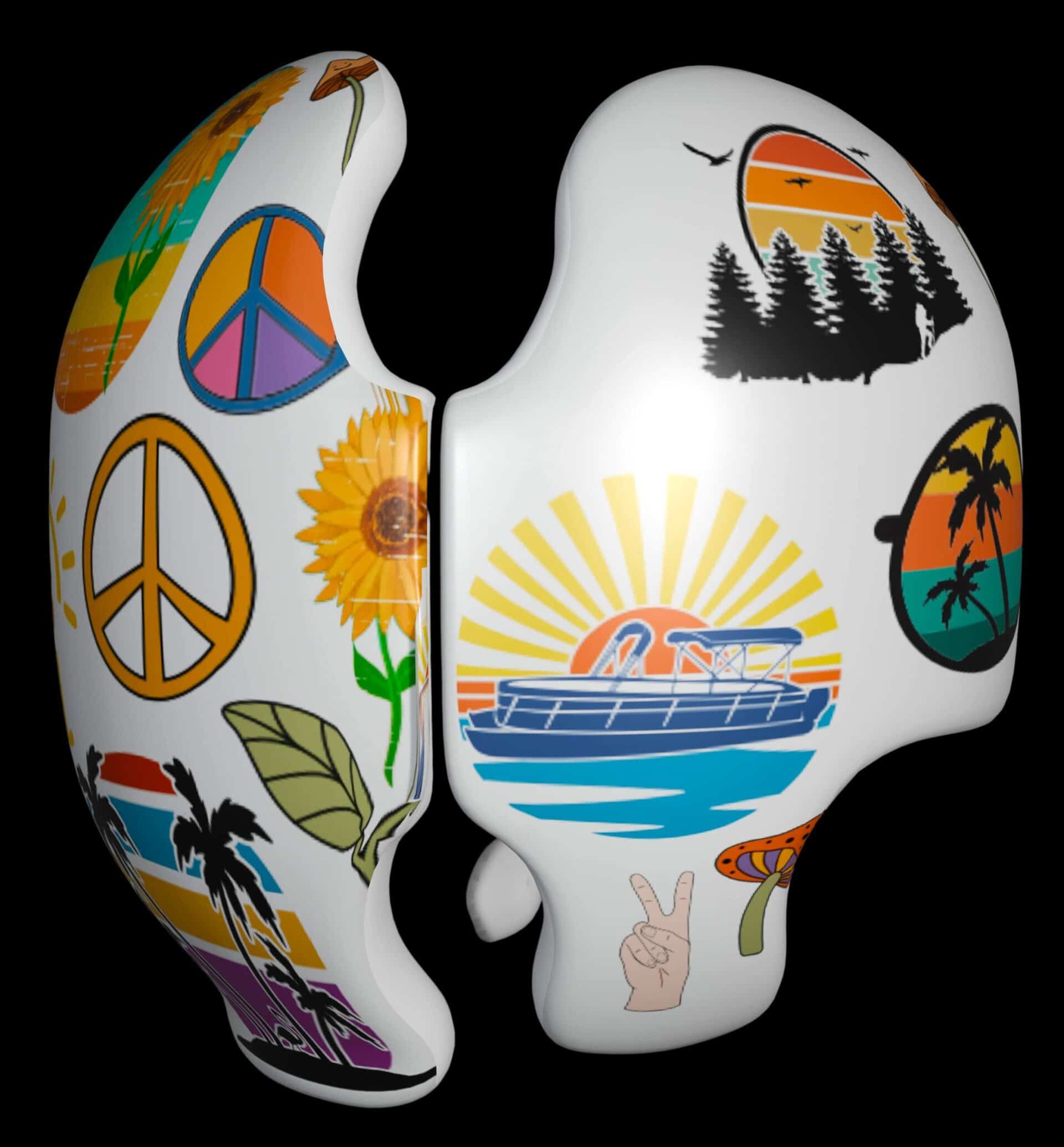 How to apply the Retro Sunshine cranial band decals – watch me decorate an entire helmet. Do you have a Star Band covered in holes? I use a mix and match of two strategies. One is pick a design with smaller elements that fit around the holes, and the second is just not worry about them. Some folks ‘paper over’ the holes, but I just cut a hole in the decal that is covering the hole. Yes, up close you ‘see’ it, but most of the time you (and other folks) are several feet away and your eyes fill in the missing part.