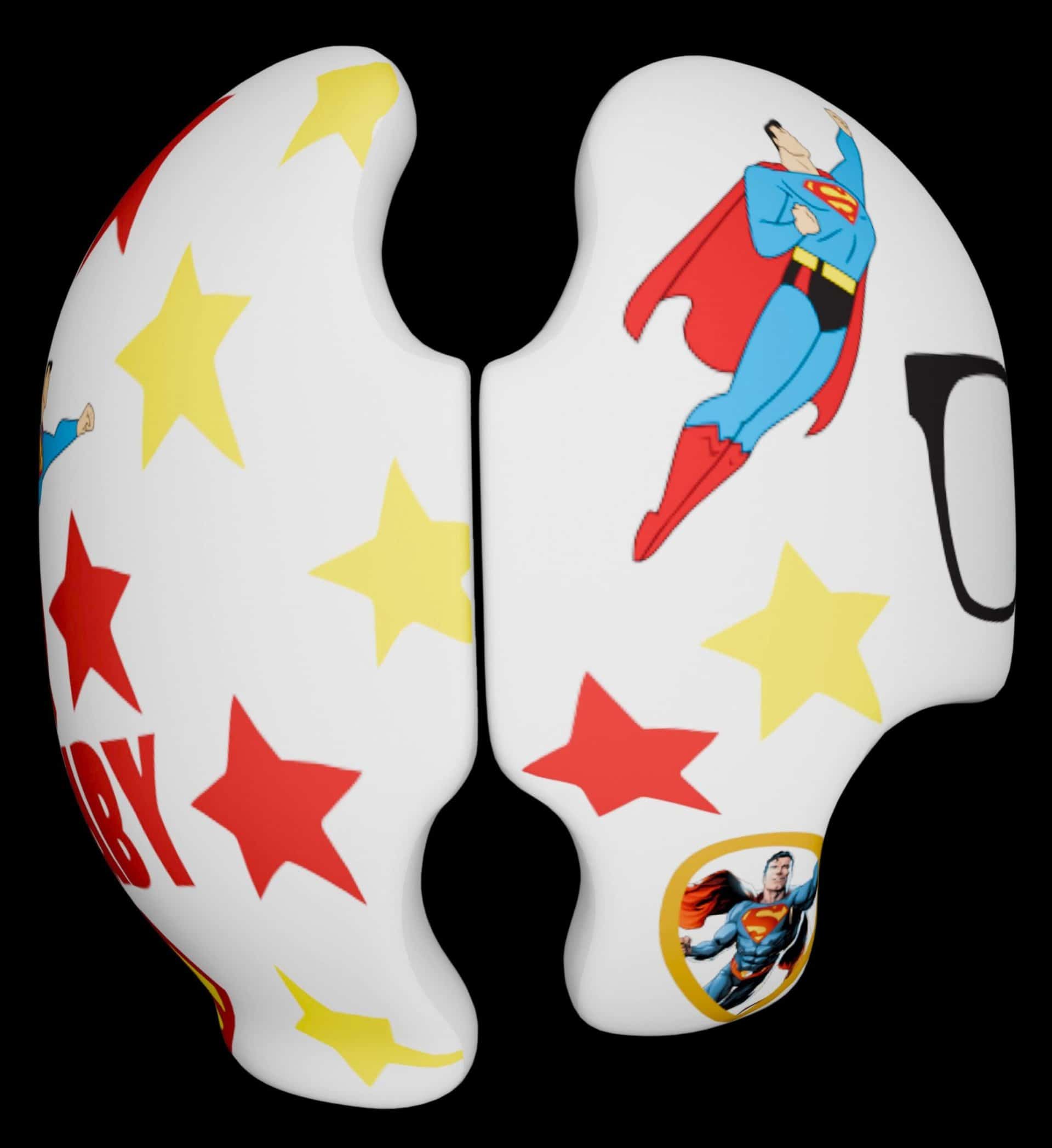 How to apply the Super Baby cranial band stickers – watch me decorate an entire helmet. Do you have one of the new Star Band 3D’s covered in small holes? What can you do? I recommend you pick a design with medium to larger decals and just ‘paper over’ the holes that get covered.. Then mod podge as you would any other band. Yes, up close you ‘see’ it, but most of the time you (and other folks) are several feet away and your eyes fill in the missing part.