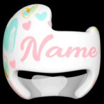 We have many princess and flowers and butterfly designs, and we are happy to mix and match from ANY other design, OR change sizing OR colors. Just note it in special instructions.  We can print any colors of the rainbow and we want you to have a helmet or doc band that you are proud to show off. We also create new artwork every day.